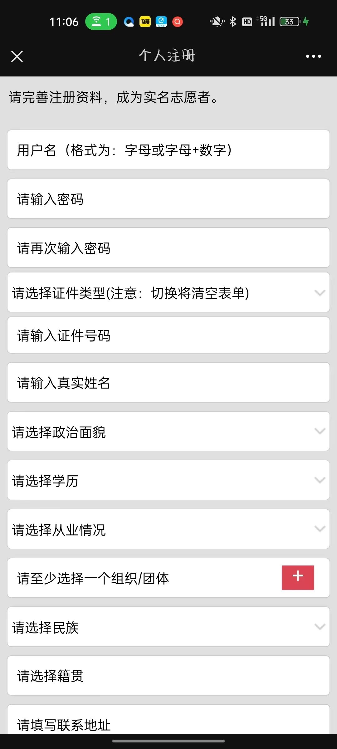 个人信息填写注意事项: